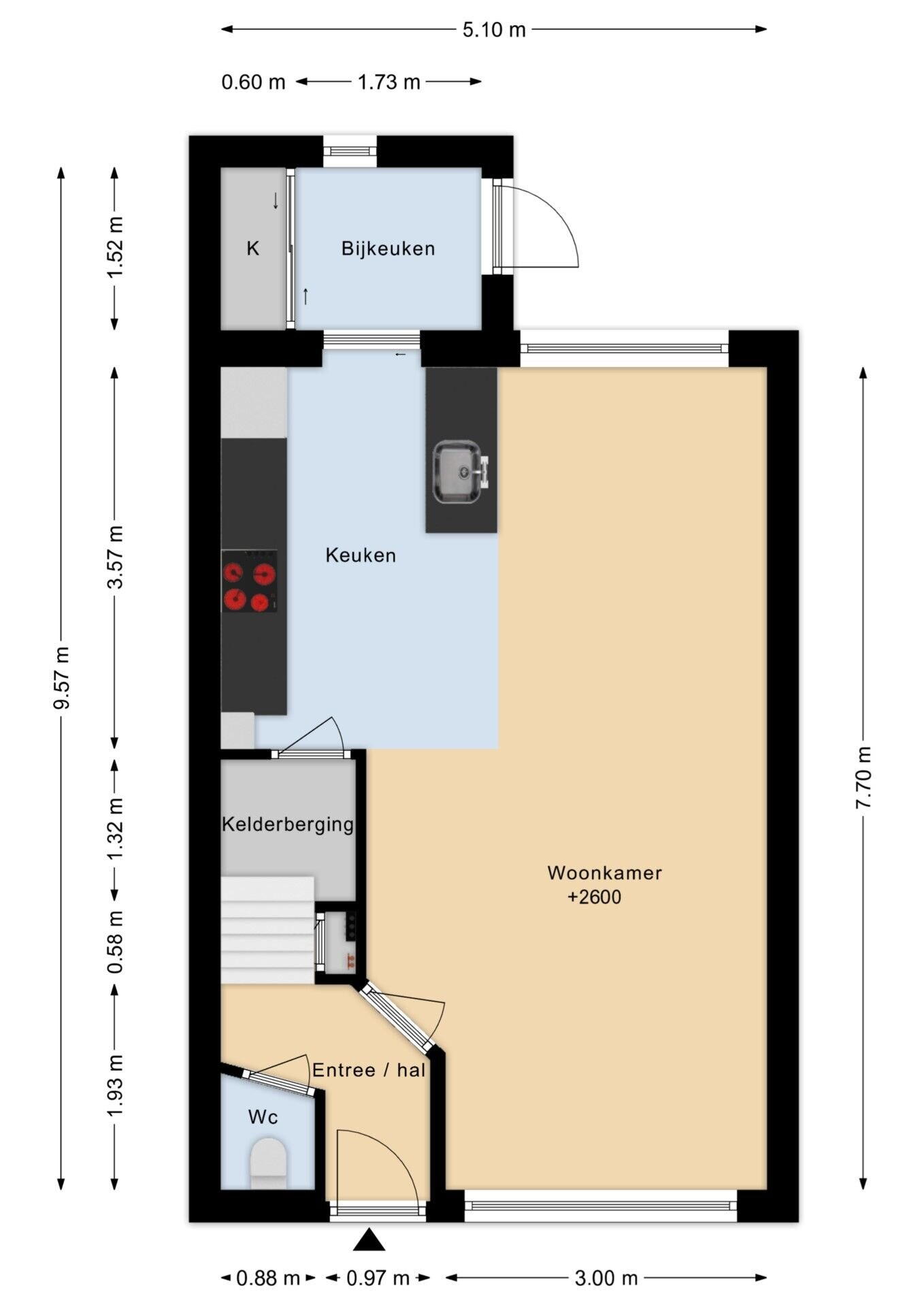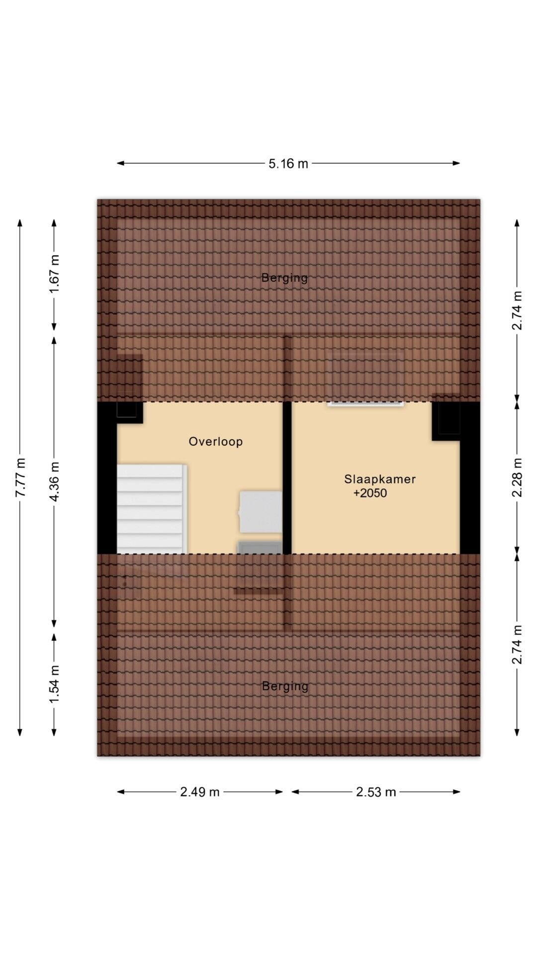 - 48 m² (9,00 meter diep en 5,30 meter breed)